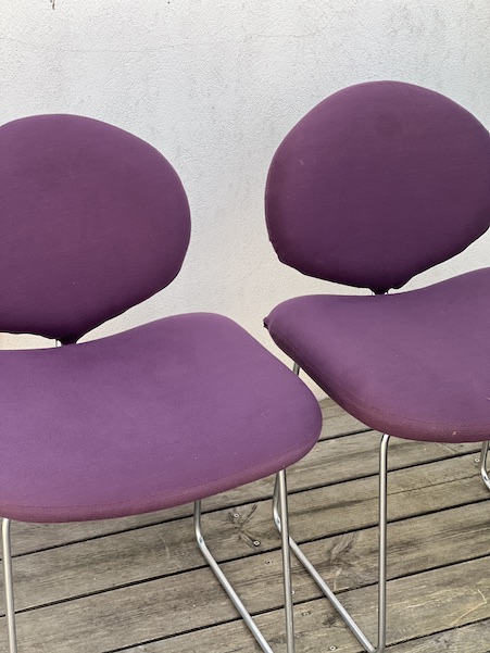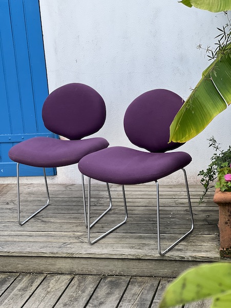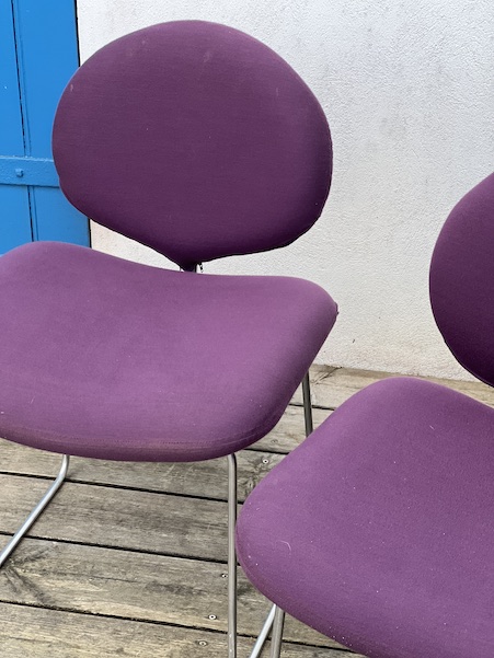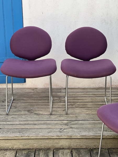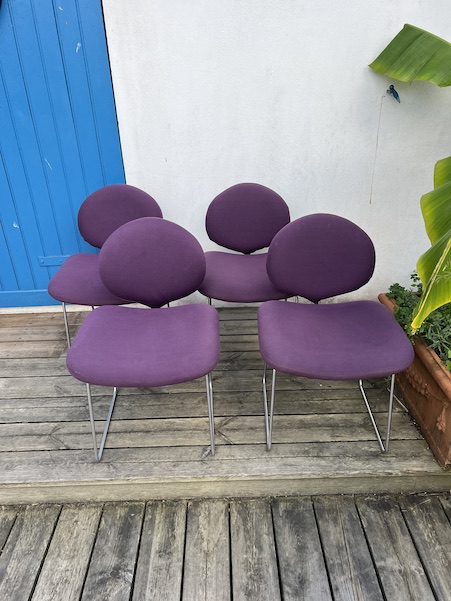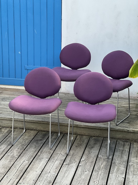 Série de 4 chaises du designer Olivier Mourgue Modele appélé chaises Djinn, édition Airborne, France 1968 en métal nickelé, mousse et tissu violet